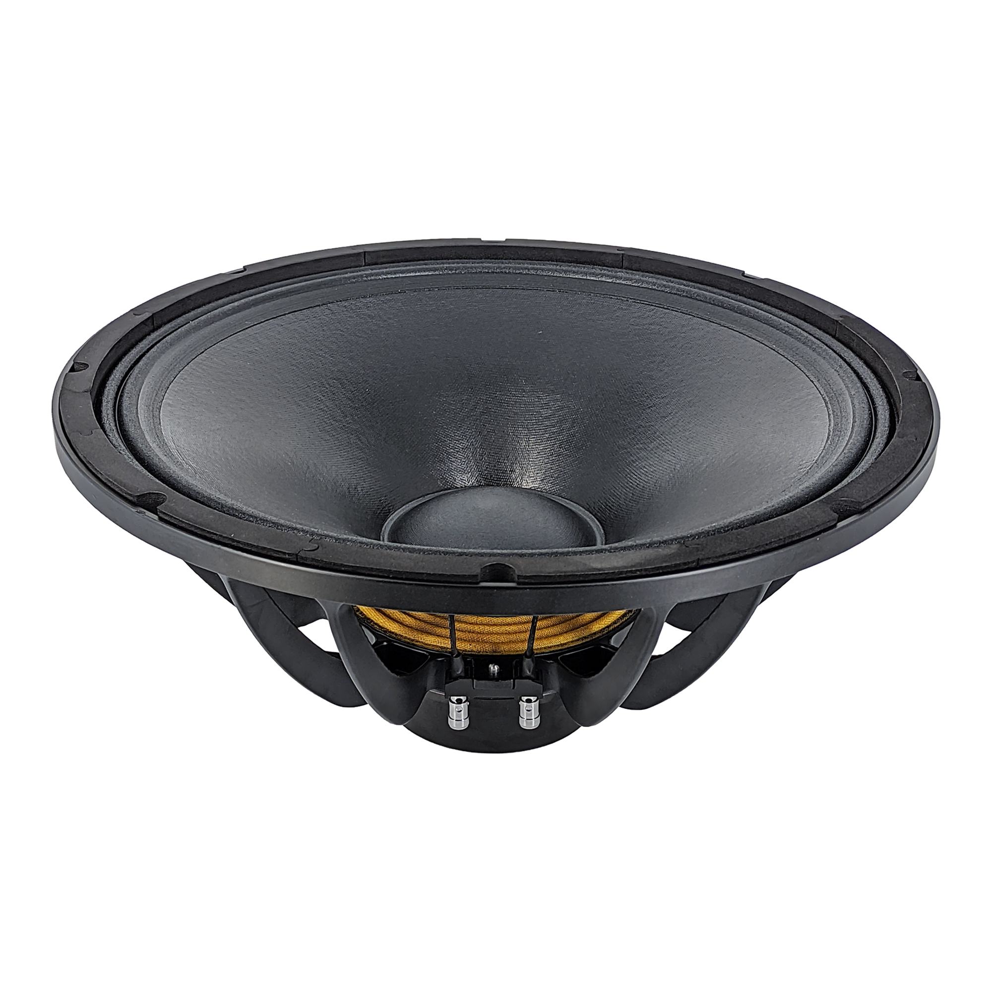 DERWEL 15ND76: 15-inch pro loudspeaker, 300-600W, 8Ω, 98dB sensitivity, 50-3500Hz. High-sensitivity, versatile for pro audio use.